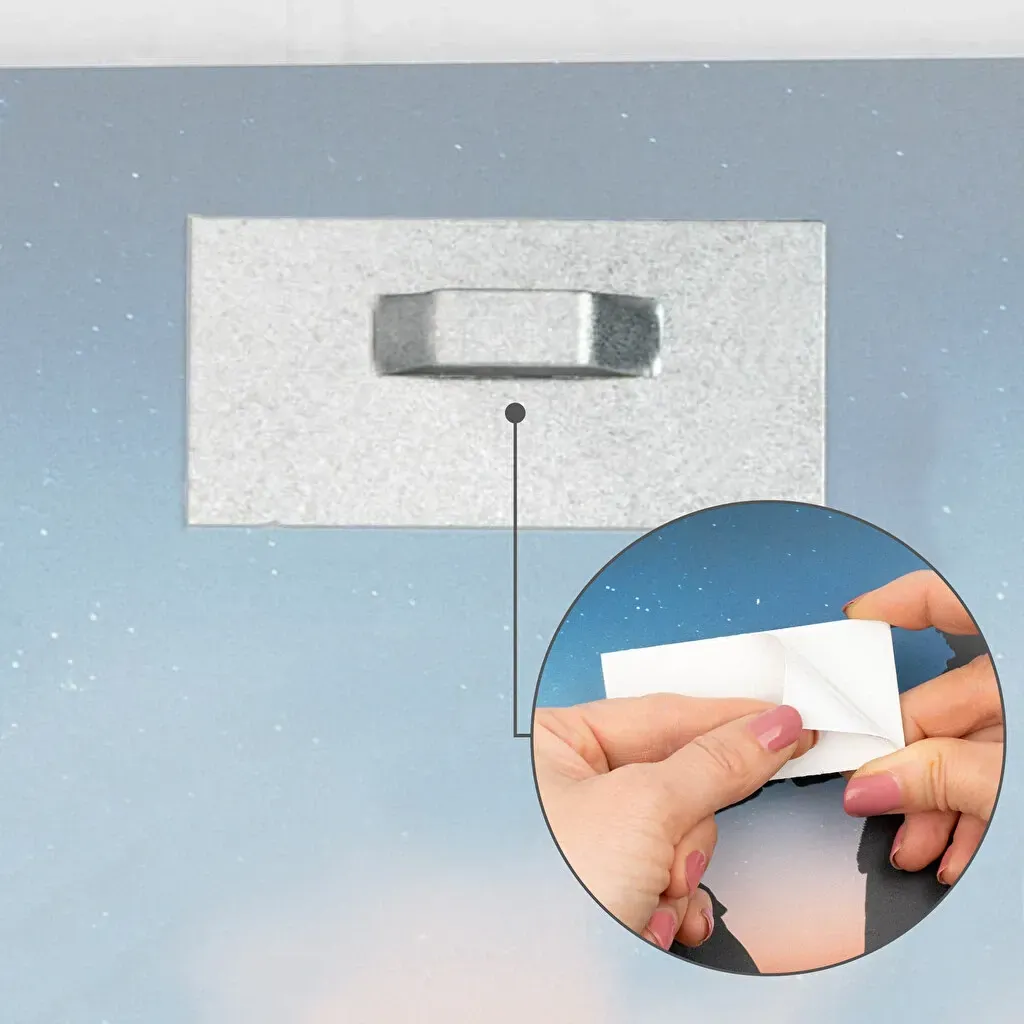 - Incluye placas metálicas para colgar el cuadro.