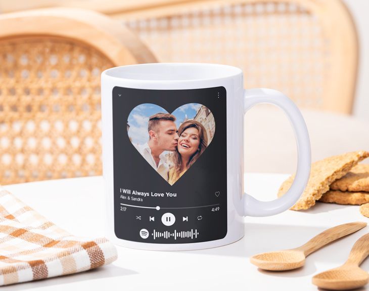 Regalos personalizados con tu fotografía, texto y el código Spotify de tu canción favorita. Este producto es una réplica del diseño de reproducción de Spotify, pero NO es un altavoz.